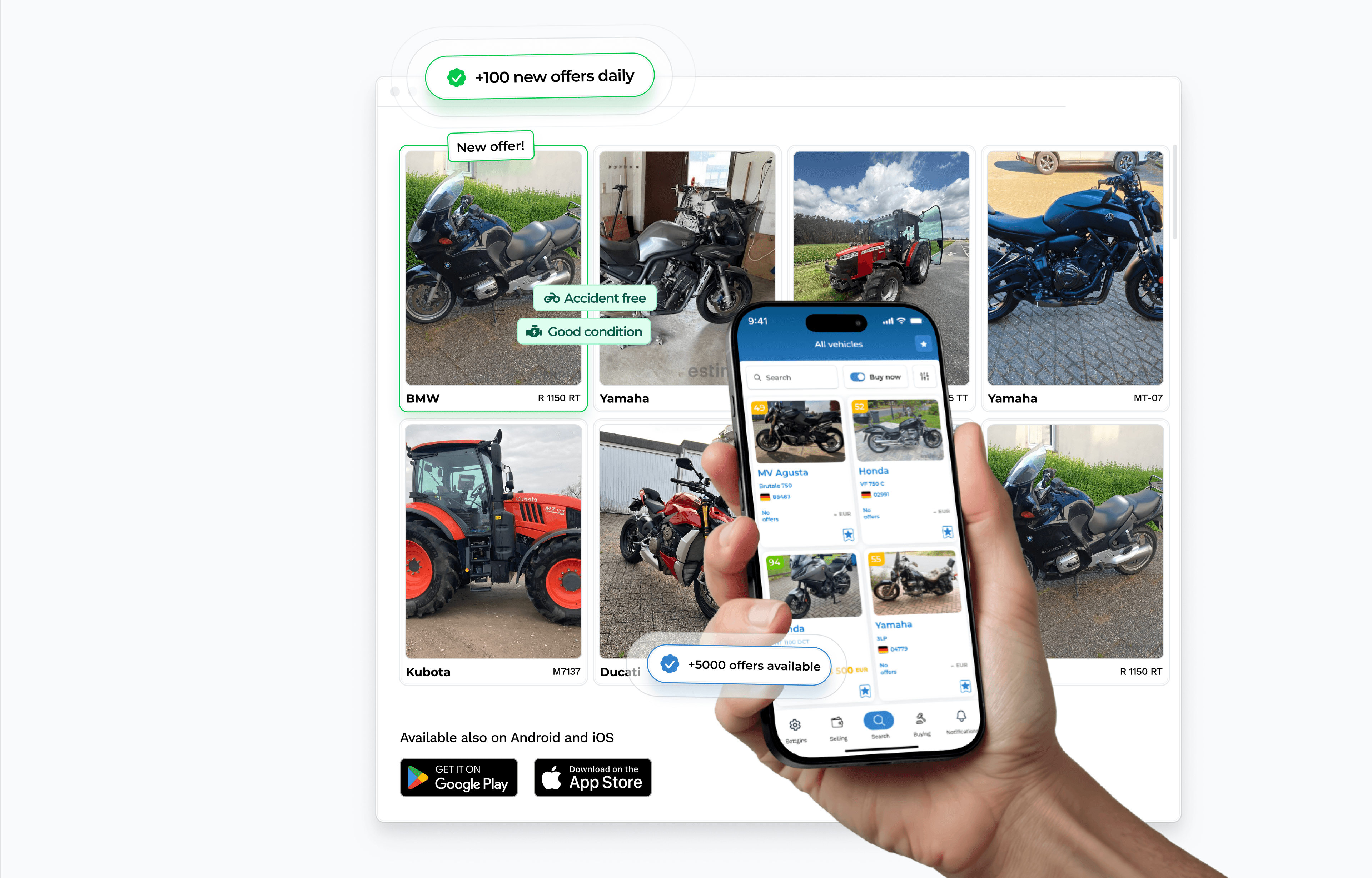 Secure access to attractive motorcycles, ATVs, agricultural machinery, campers and more today - simple and convenient through our platform